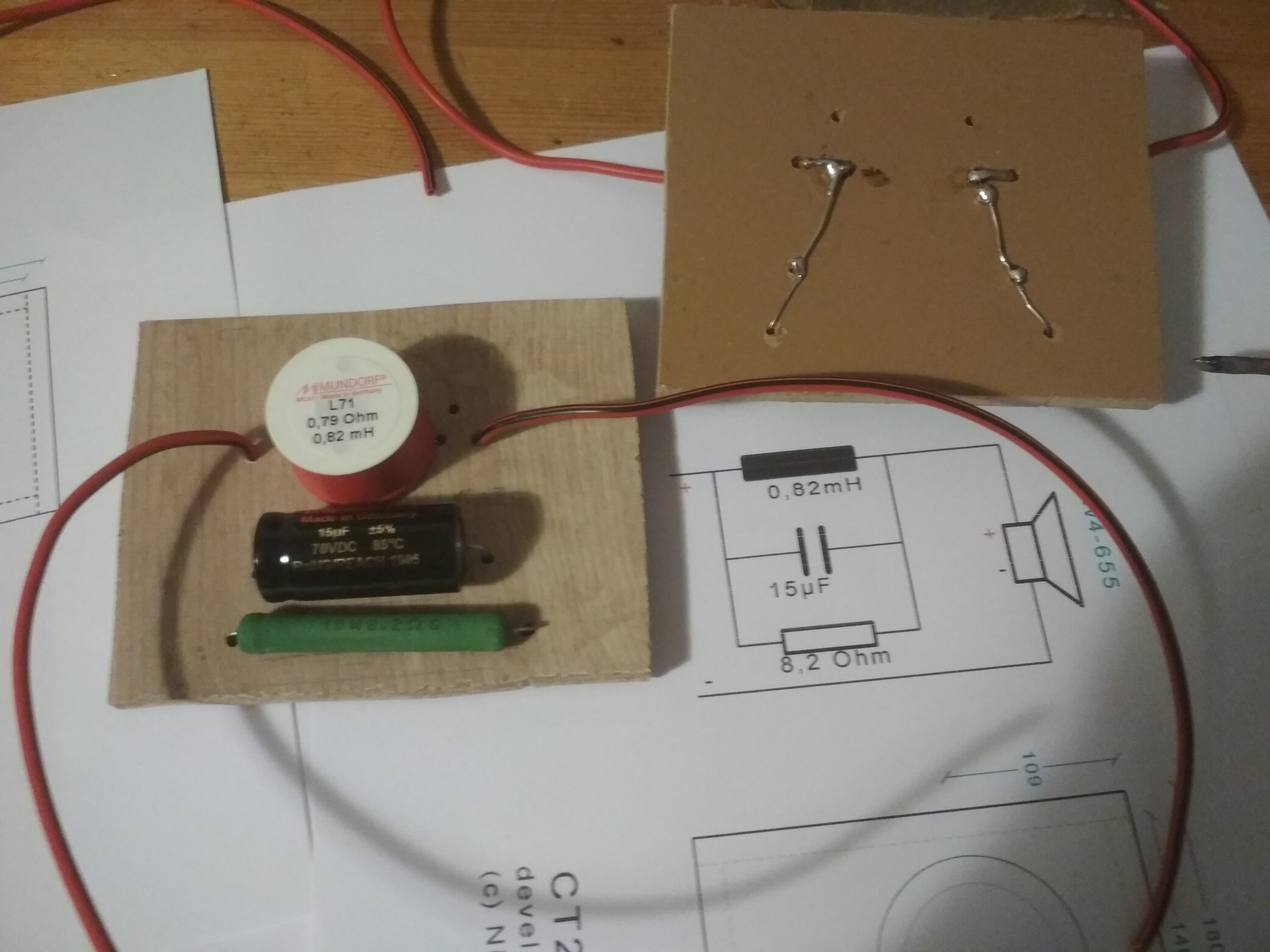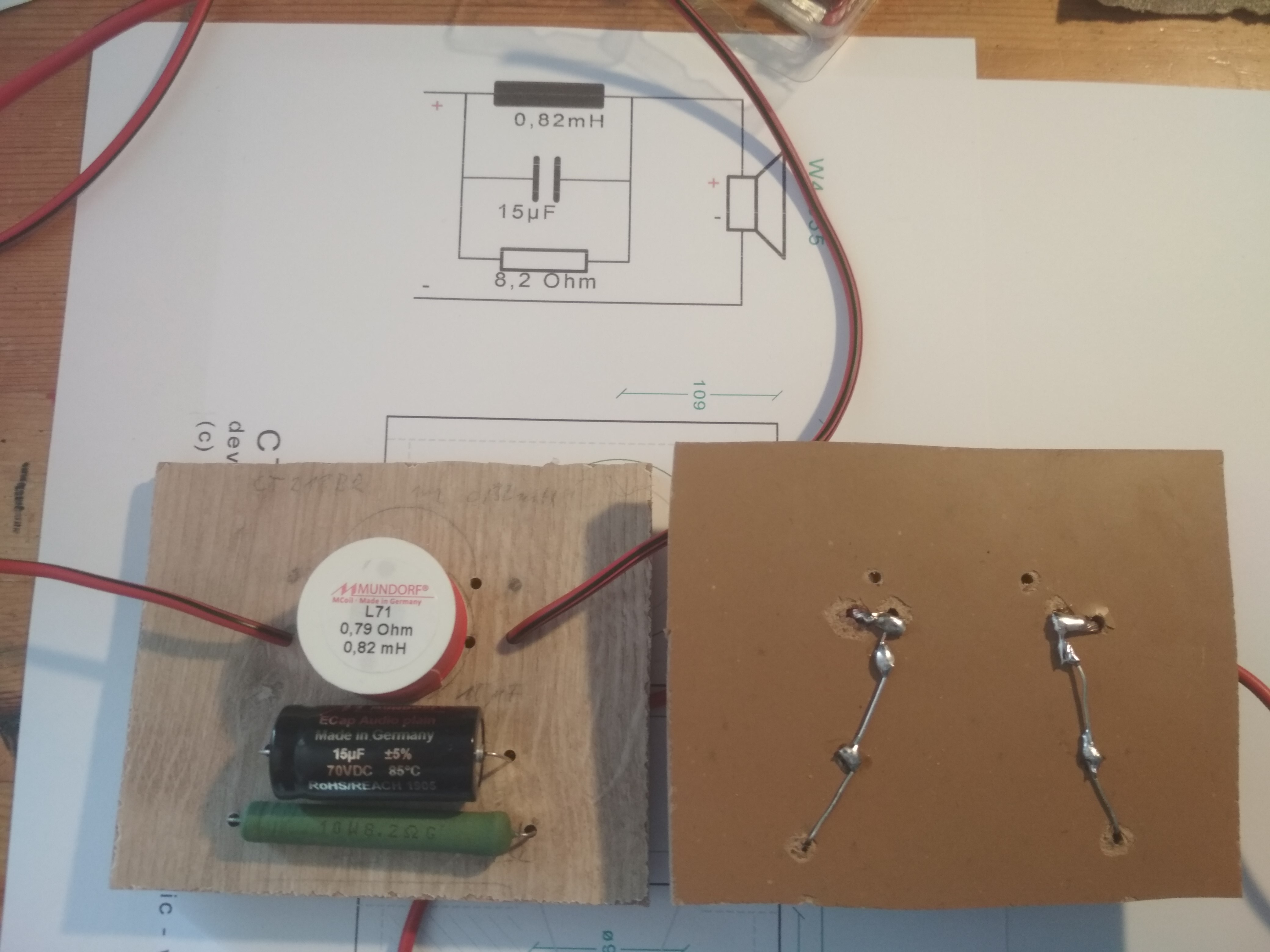 Bei den Regalboxen habe ich damals noch die glöteten Frequenzweichen geschenkt bekommen. Diese mal habe ich auch diese selber gelötet. Sicher geht es schöner, und vielleicht werden einige Löststellen mal Probleme machen, aber es sind die ersten selbst gemachten weichen. ;-)